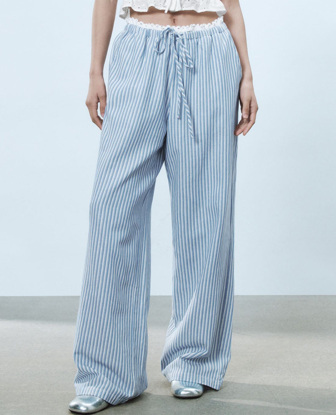 Quần nữ ống rộng lưng thun kẻ sọc