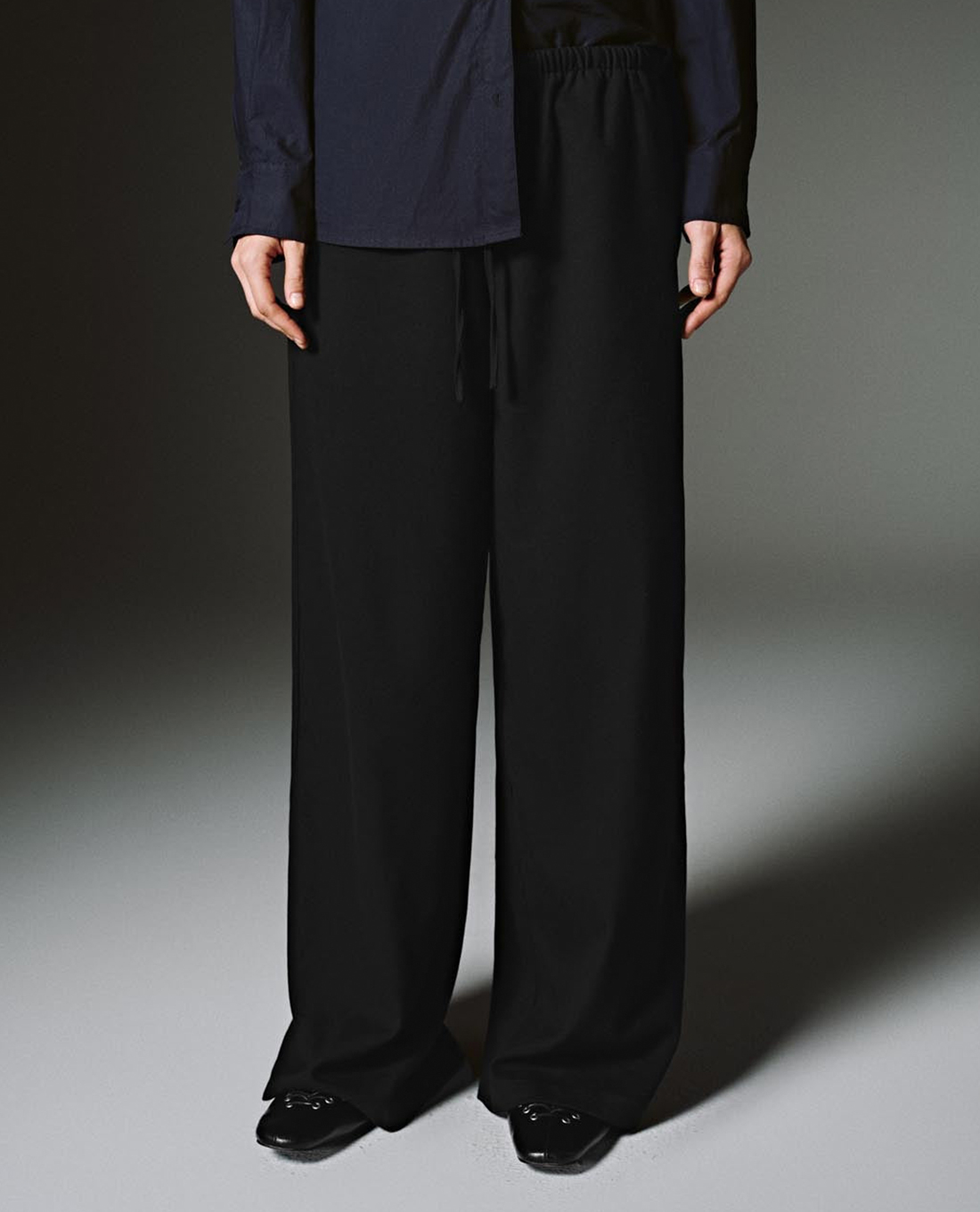 Quần nữ ống rộng lưng thun phối dây rút