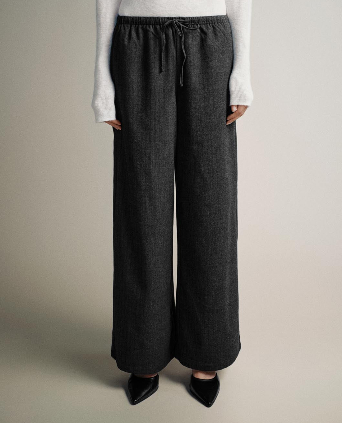 Quần nữ ống rộng lưng thun phối dây rút