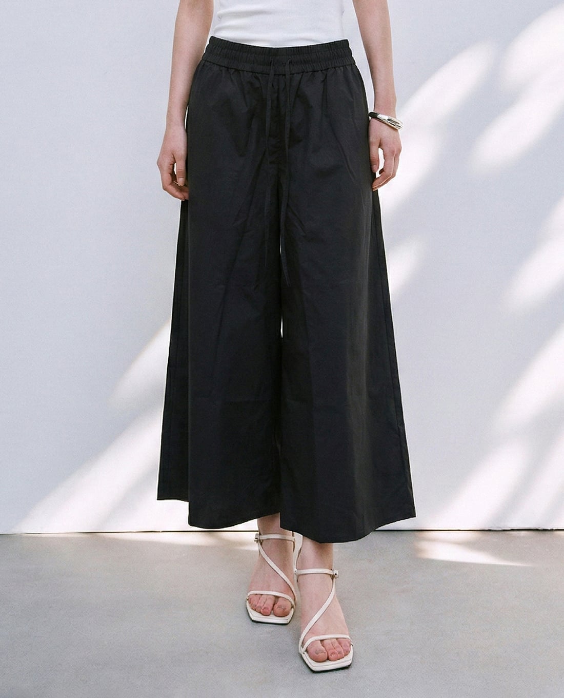 Quần nữ ống rộng lưng thun phối dây rút