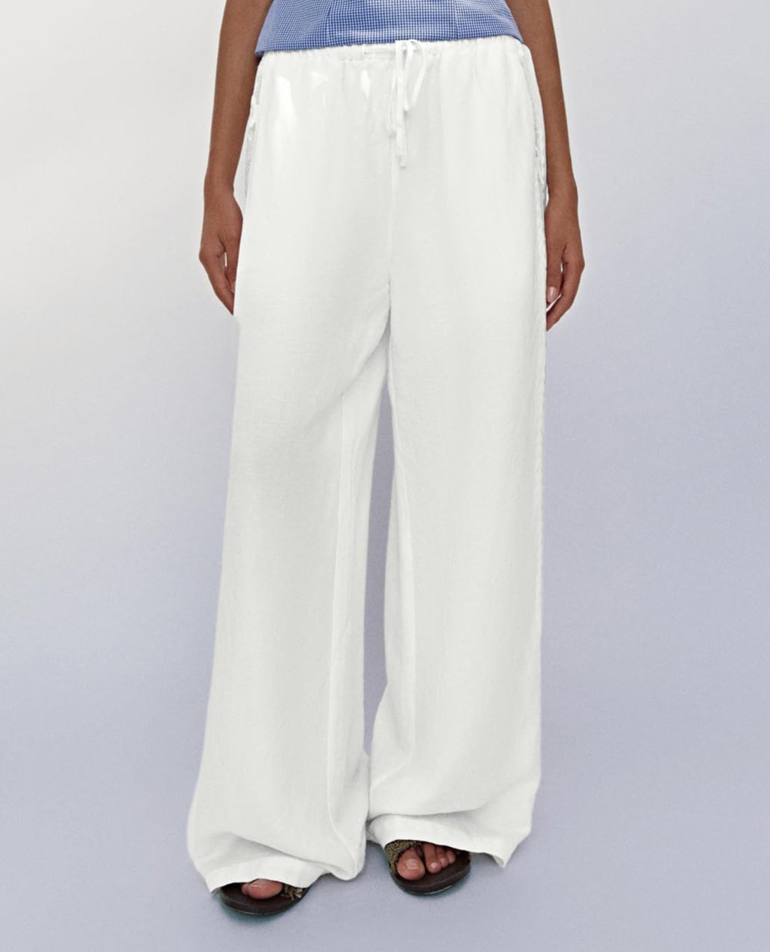 Quần nữ ống rộng lưng thun phối dây rút