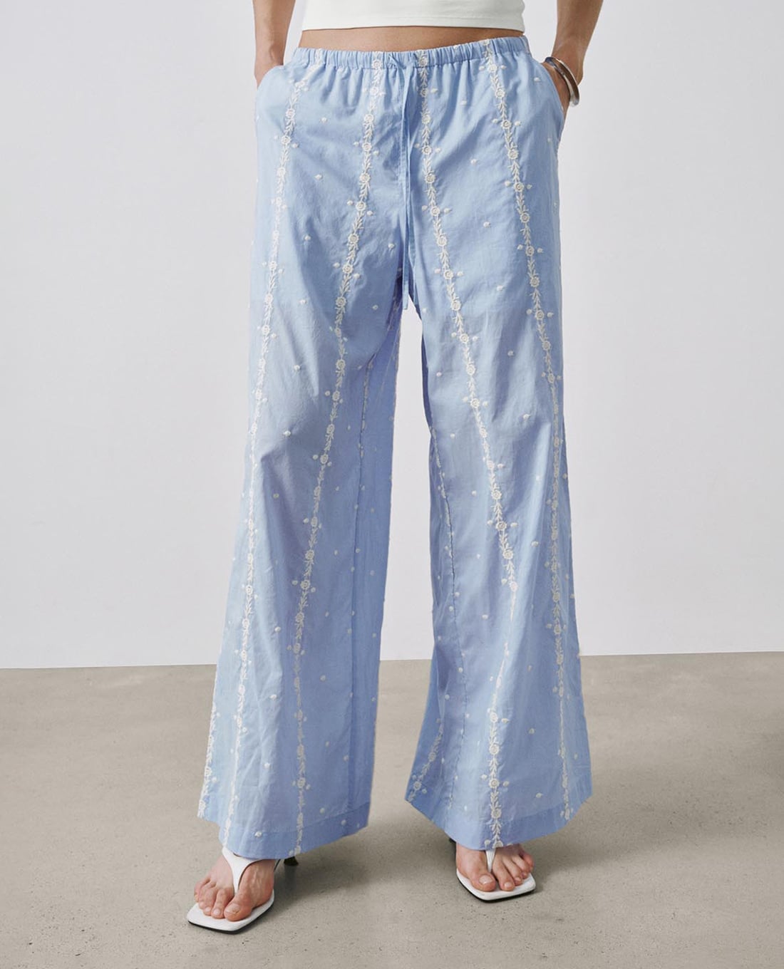 - Họa tiết thêu hoa chạy dọc tạo điểm nhấn nữ tính