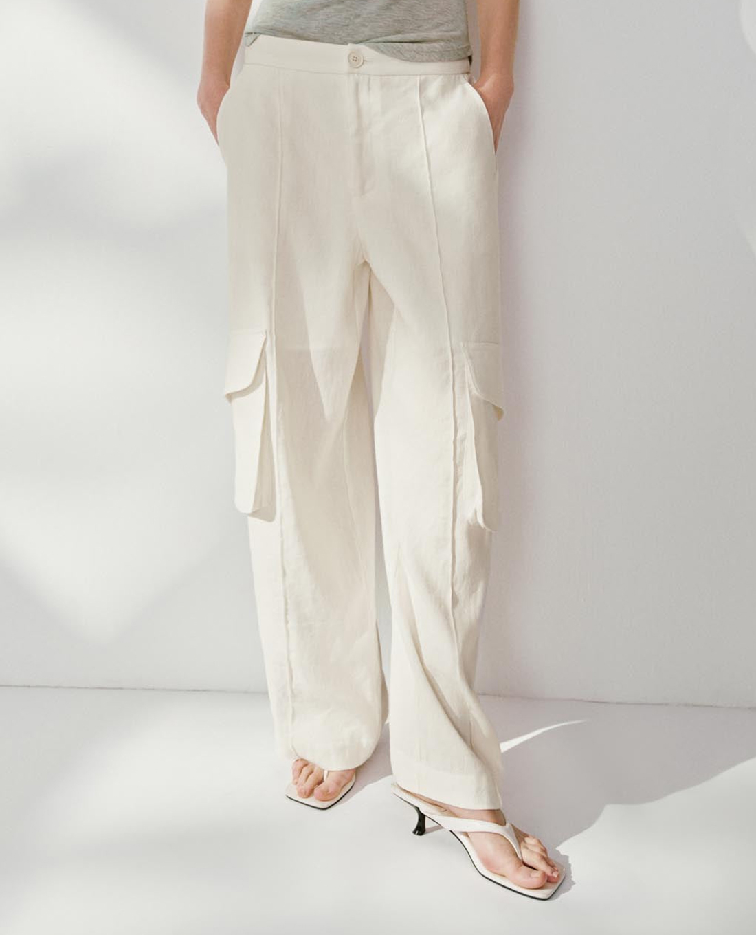 Quần nữ ống rộng phối túi hộp