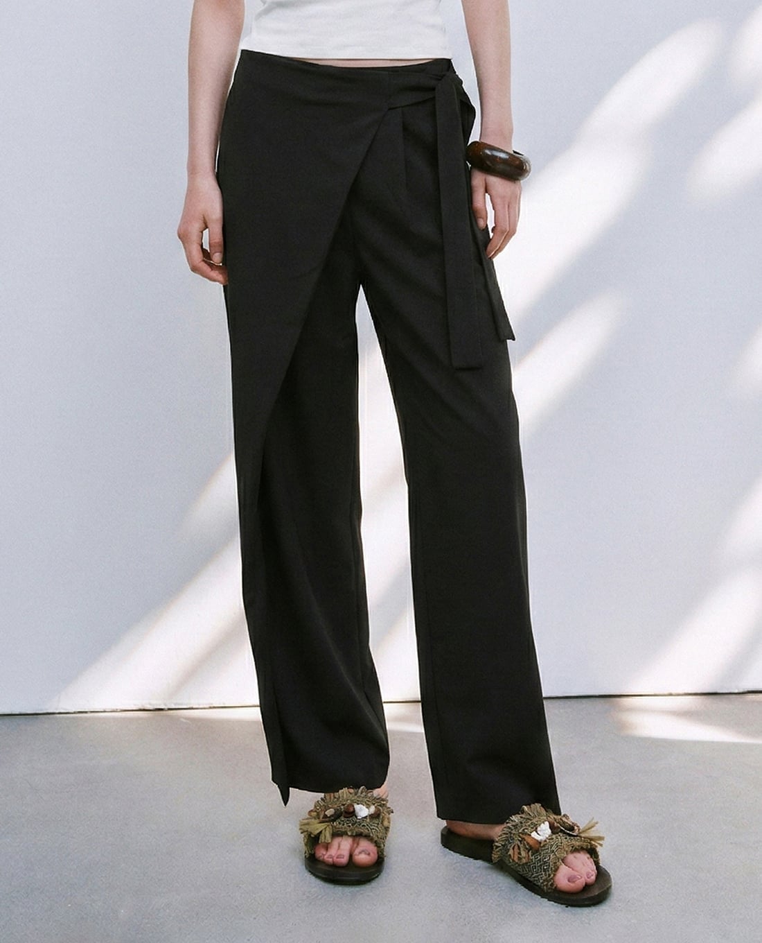 Quần nữ ống rộng phối vạt đắp chéo