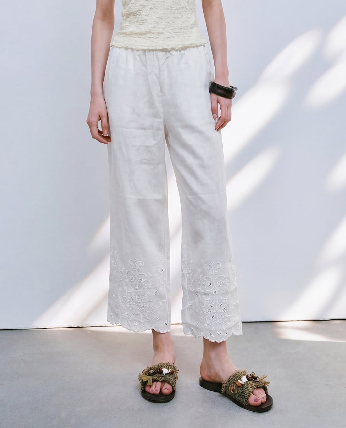 Quần nữ ống rộng thêu ren thanh lịch