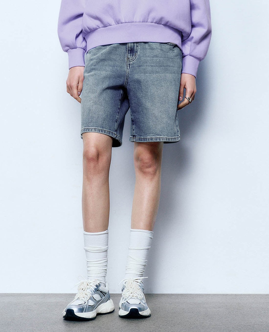 Quần short jeans nữ ống rộng wash bạc