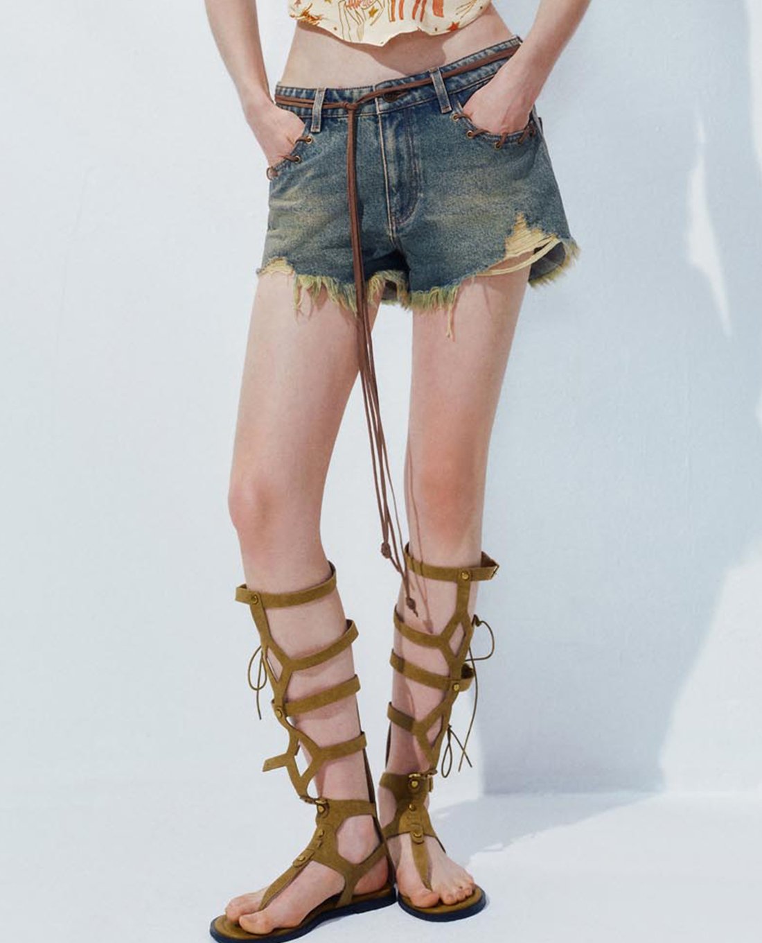 - Chi tiết xỏ dây da hai bên hông mang phong cách phương Tây phá cách