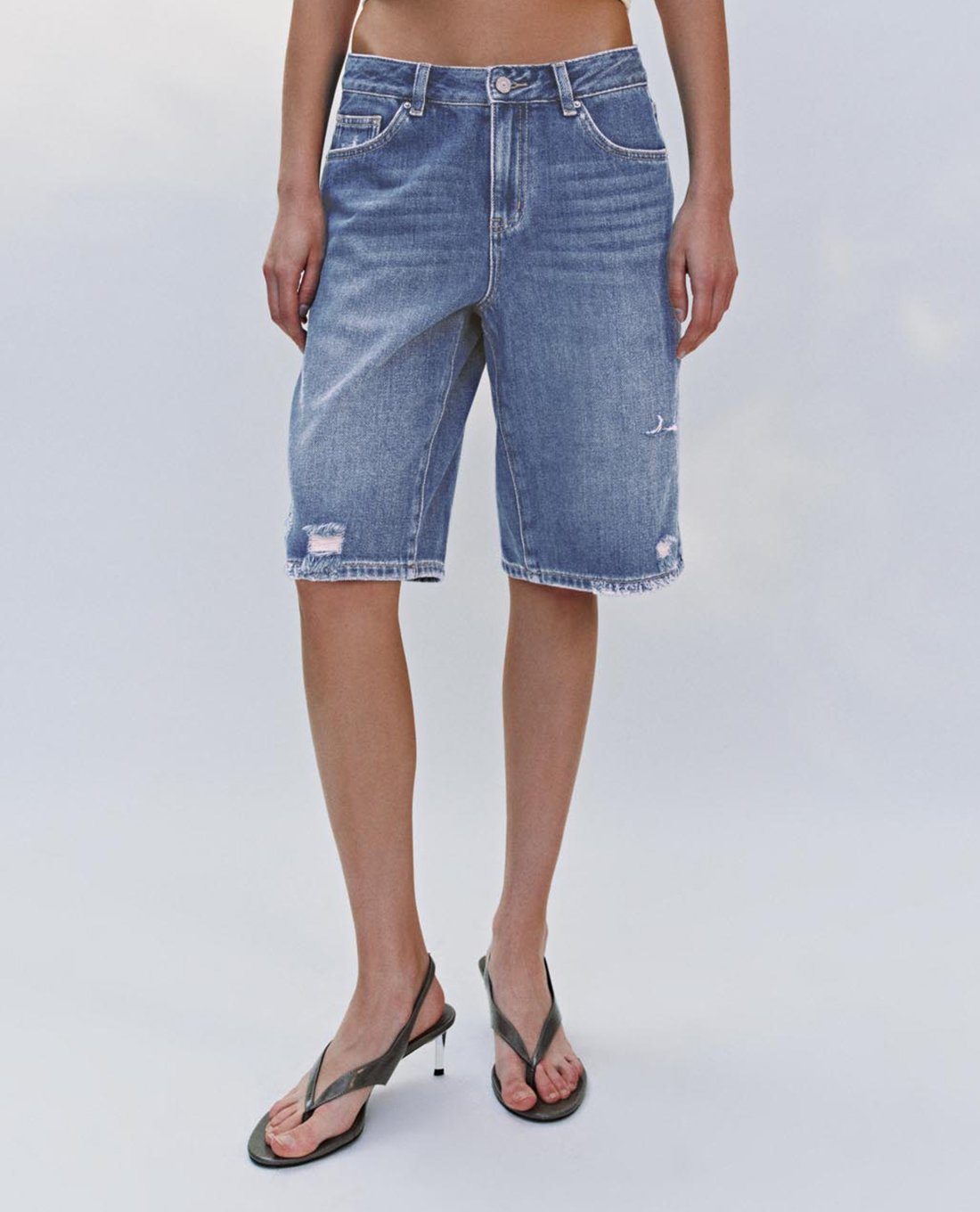 URBAN REVIVO – Quần shorts jeans nữ ngang gối thời trang