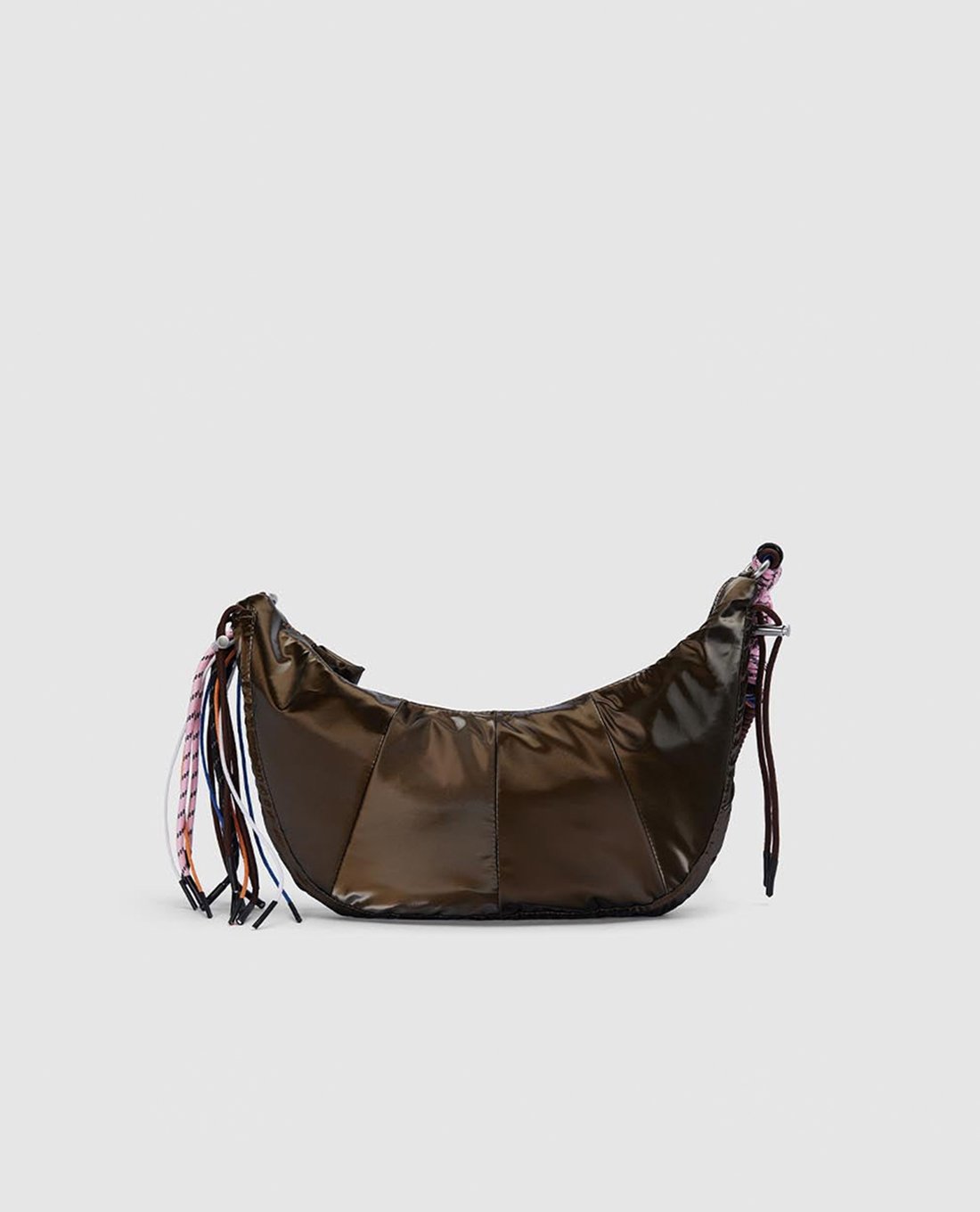 Túi đeo chéo nữ phom bán nguyệt phối tua rua