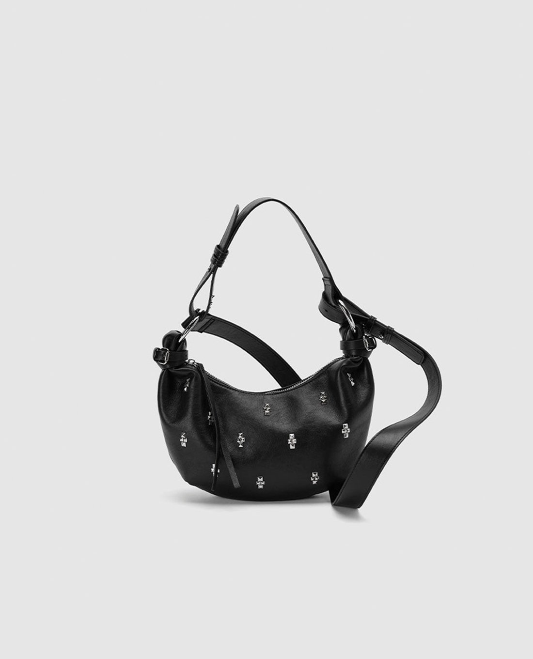 Túi đeo vai nữ hình bán nguyệt đính họa tiết