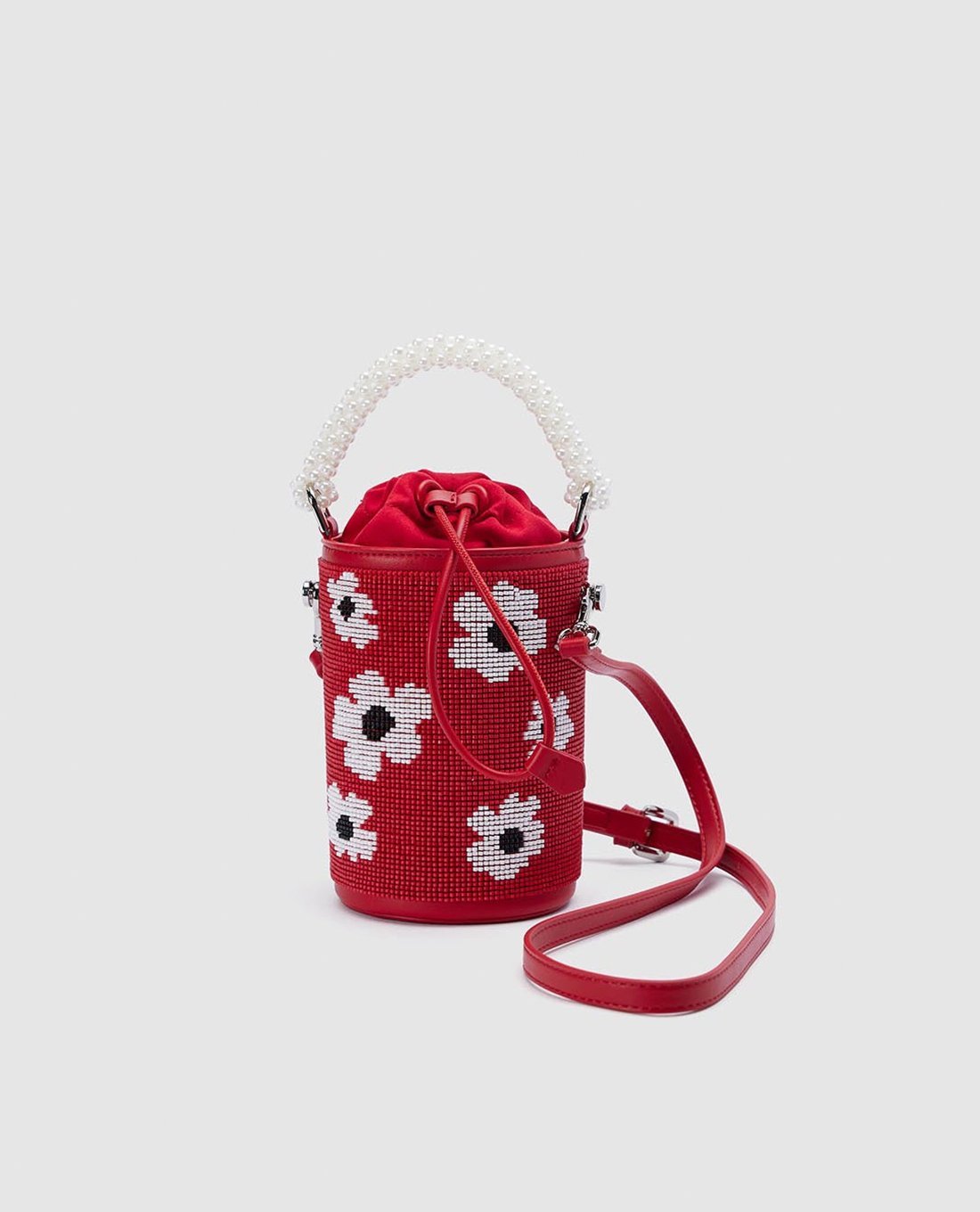 - Thân túi đính hạt cườm với họa tiết hoa nổi bật