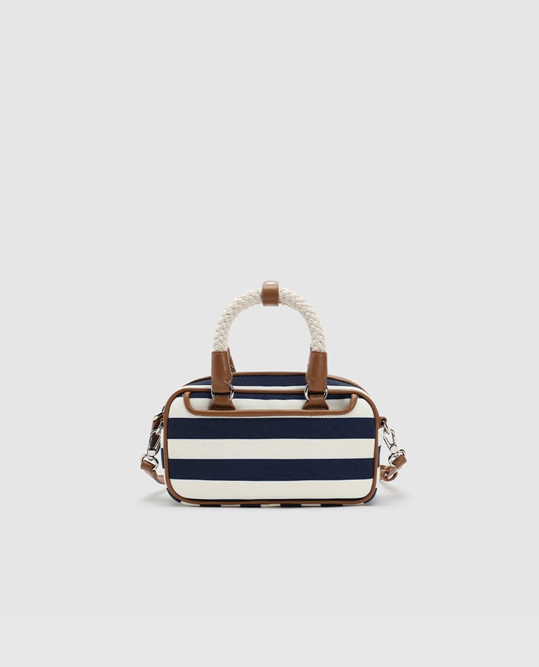 Túi đeo vai nữ phom chữ nhật kẻ sọc quai đan