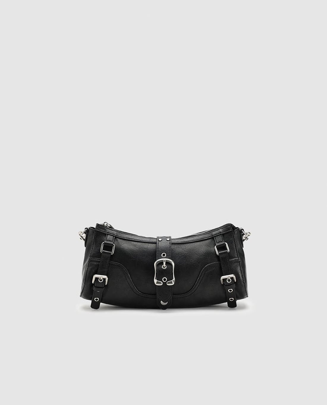 - Chi tiết khóa kim loại lớn ở trung tâm tạo điểm nhấn mạnh mẽ