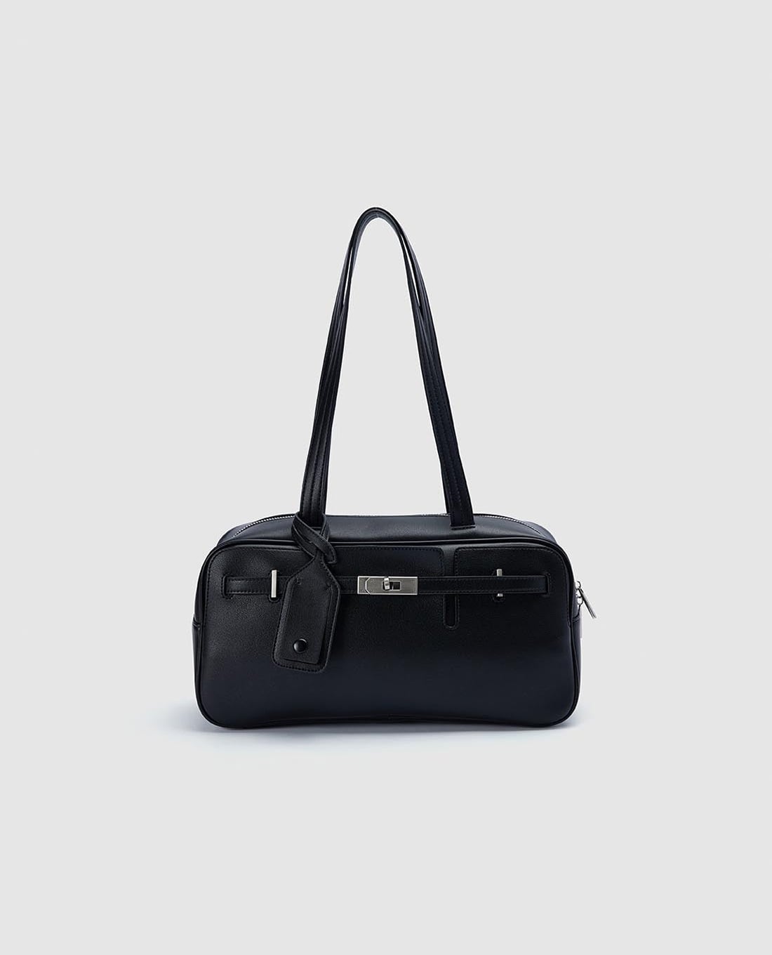 - Kiểu dáng chữ nhật với khóa xoay kim loại tạo điểm nhấn