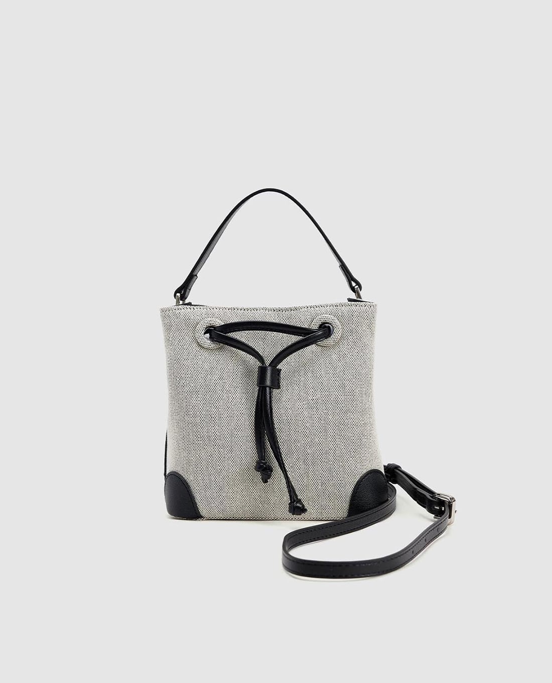 - Thiết kế túi bucket kết hợp chất liệu canvas và da hiện đại
